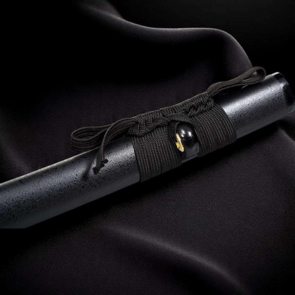 Expertly forged from durable 1060 carbon steel and anchored with a full tang core, this 105 cm (41 in) katana features a 72 cm (28 in) blade, 3.2 cm (1.2 in) wide and 0.7 cm (0.27 in) thick, flowing seamlessly into a 30 cm (11.8 in) handle wrapped in black cotton ito over textured synthetic rayskin. Finished with a matching cotton sageo and structured iron tsuba, it’s designed for collectors, cosplayers, and practitioners seeking a refined tribute to a timeless soul reaper form.